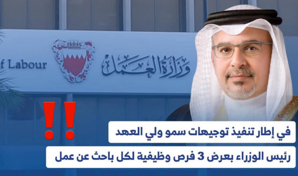 في وقت ترتفع فيه معدلات البطالة في البلاد، وصف مصدر نقابي مطلع التصريحات الأخيرة لولي العهد، رئيس الوزراء، الأمير سلمان بن حمد آل خليفة، بشأن إلزام وزارة العمل بعرض ثلاث فرص وظيفية لكل باحث عن عمل مسجل لديها بأنها «مزحة ثقيلة يصعب تطبيقها عمليًا» معتبرًا أن هذه التوجيهات لا تعالج أصل الأزمة المزمنة في سوق العمل البحريني.